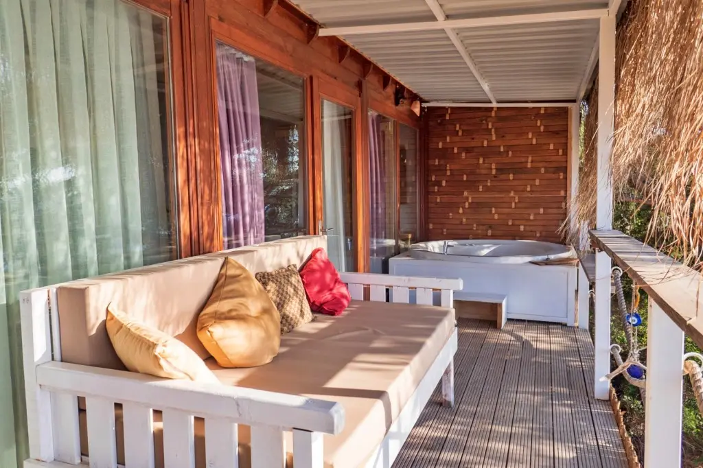 Deniz manzaralı terasında çift kişilik jakuzisiyle romantik bir kaçamak.