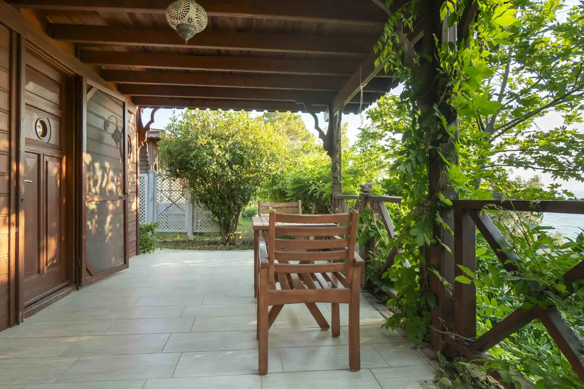 Özel teras ve bahçesi bulunan bu odalarda deniz manzarasına karşı oturma grubu, hamak veya salıncak yer alır. Zemin parke kaplıdır.